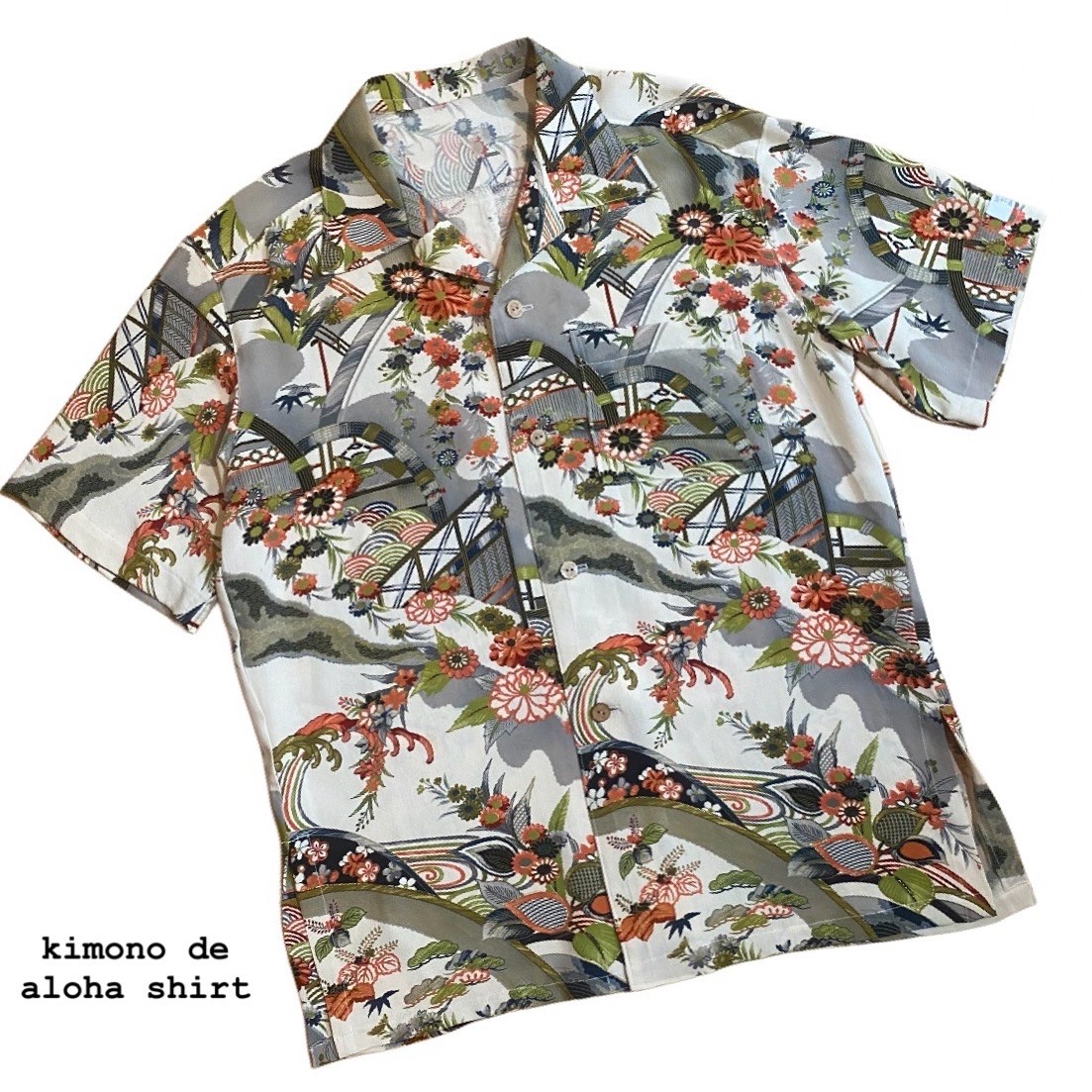 着られなくなった着物からアロハシャツを作る 古い物であったりシミや傷があったりします 古き良き物にご理解のある方にお買い求め頂きたいです