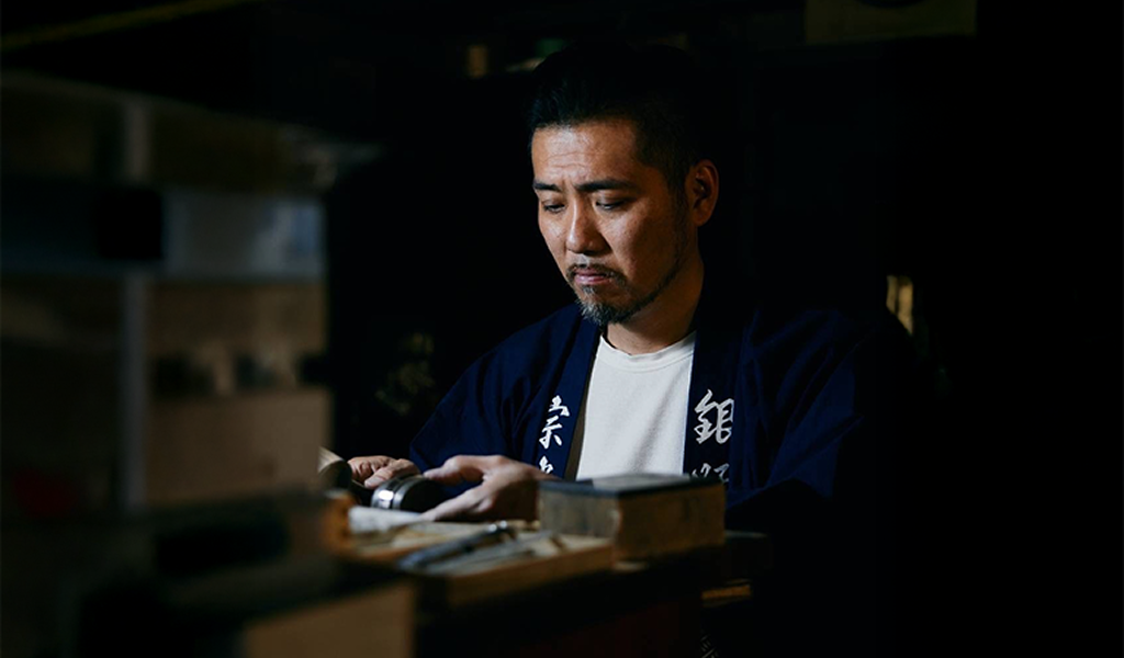 東京銀器 「有限会社 日伸貴金属」 銀師:上川 宗光 師匠であり父・上川宗照から江戸時代続く「銀師」の技を受け継ぐ三代目 。400年の伝統と若き感性を融合させ、次世代の伝統工芸に挑戦する。