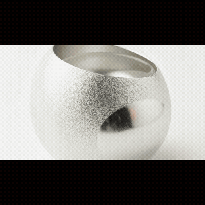 全体を完璧な鏡面に磨き上げた上で、指が自然と触れる部分を人間工学に基づき設計。