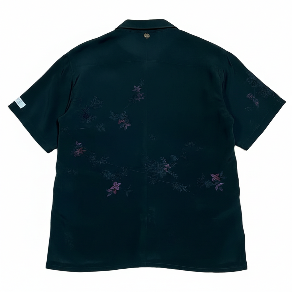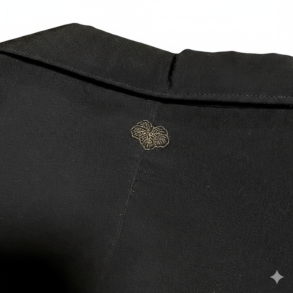 少し張りのある黒生地に漆で花絵が施されていてそのグラデーションが美しい